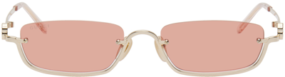 Gucci Gold Rectangular Sunglasses In Gold-gold-red