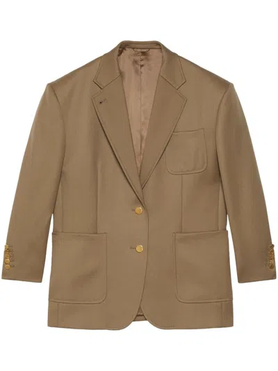 Gucci Single-breasted Camel Wool Jacket In Blue
