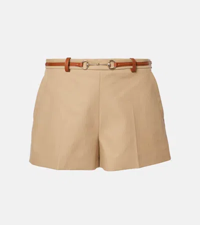Gucci Horsebit Cotton Drill Shorts In Neutral
