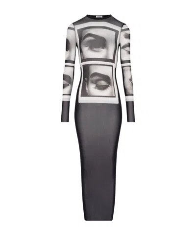 Jean Paul Gaultier Face-print Mesh Maxi Dress In Black