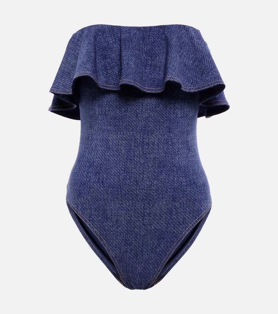 KARLA COLLETTO Off-shoulder Swimsuit In Blue Denim