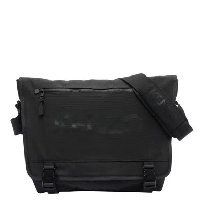 Kenzo Black Kenzo 48 Messenger Bag, Buckles Closure, Inner Open Pocket For Laptop, External Zipped Pocket, 1 Handle, Adaptable Strap, Frontal Tone On Tone Logo, 33x49x15 cm