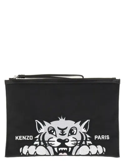 Kenzo Varsity Large Clutch, Zip Closure, One Inner Slot, Wrist Strap, 20x30x1,5 cm