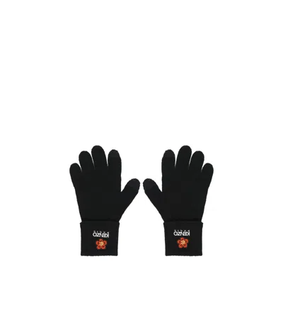 Kenzo 'boke Flower Crest' Wool Gloves In Black
