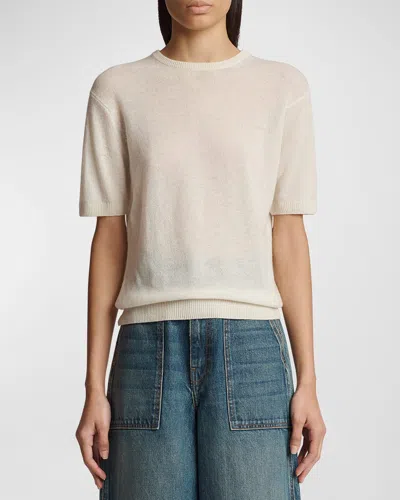 Khaite Pierre Cashmere Short-sleeve Sweater In Cream