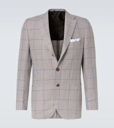 KITON Fantasy Cashmere And Linen Blazer In Brown