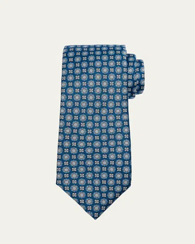 Kiton Men's Floral Medallion Silk Tie In Blu