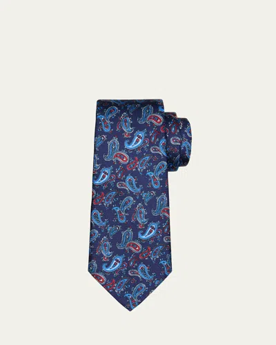Kiton Men's Paisley Silk 7-fold Tie In Blu Mult