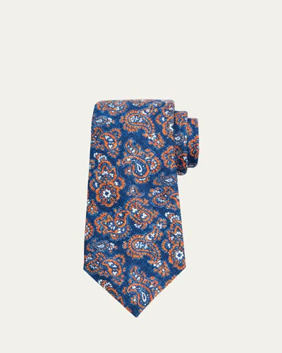 Kiton Men's Paisley Silk Tie In Orng
