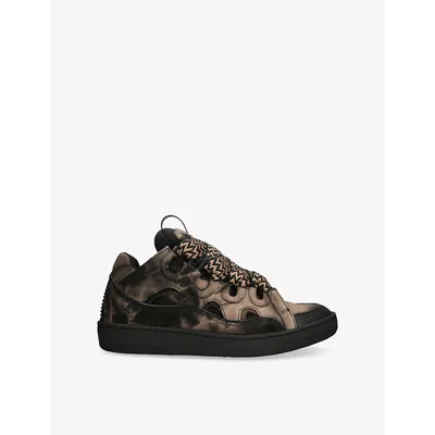 Lanvin Mens  Curb Abstract-print Canvas And Leather Low-top Trainers In Blk/beige