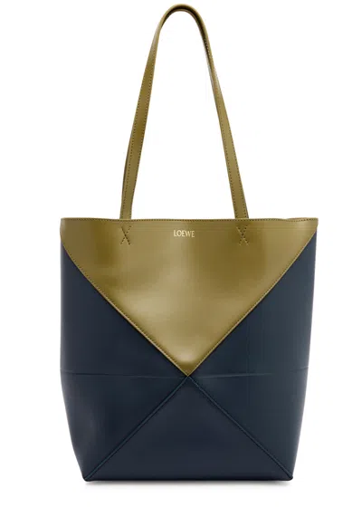 Loewe Puzzle Fold Medium Leather Tote In Navy