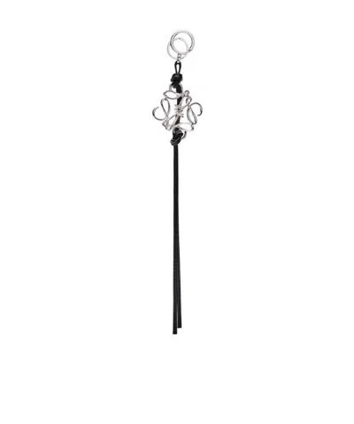 Loewe Womens Palladium/black Anagram Leather And Silver-toned Brass Charm