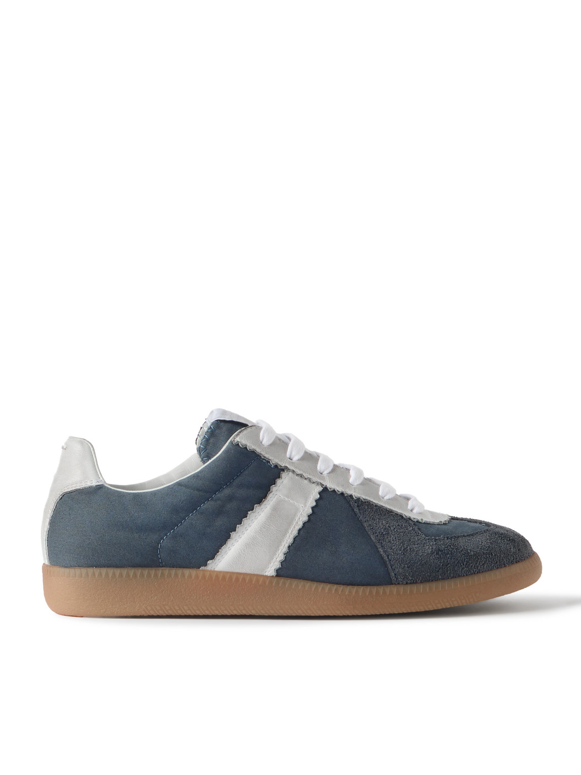 Maison Margiela Replica Distressed Leather And Suede-trimmed Twill Sneakers In Blue