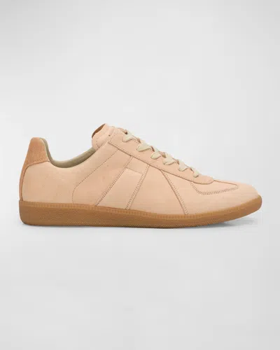 Maison Margiela Men's Replica Leather Low-top Sneakers In Beige