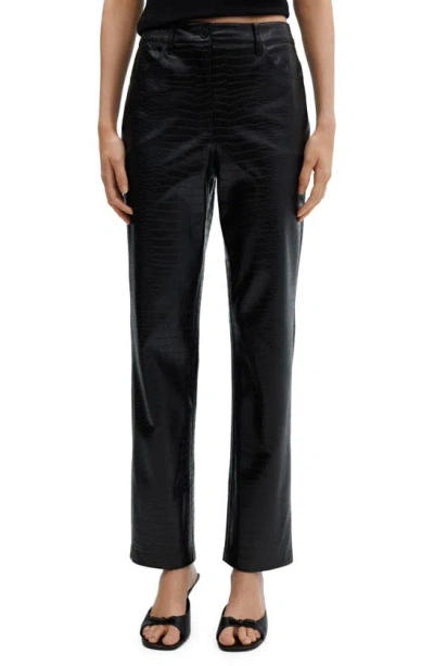Mango Croc Embossed Faux Leather Straight Leg Pants In Black