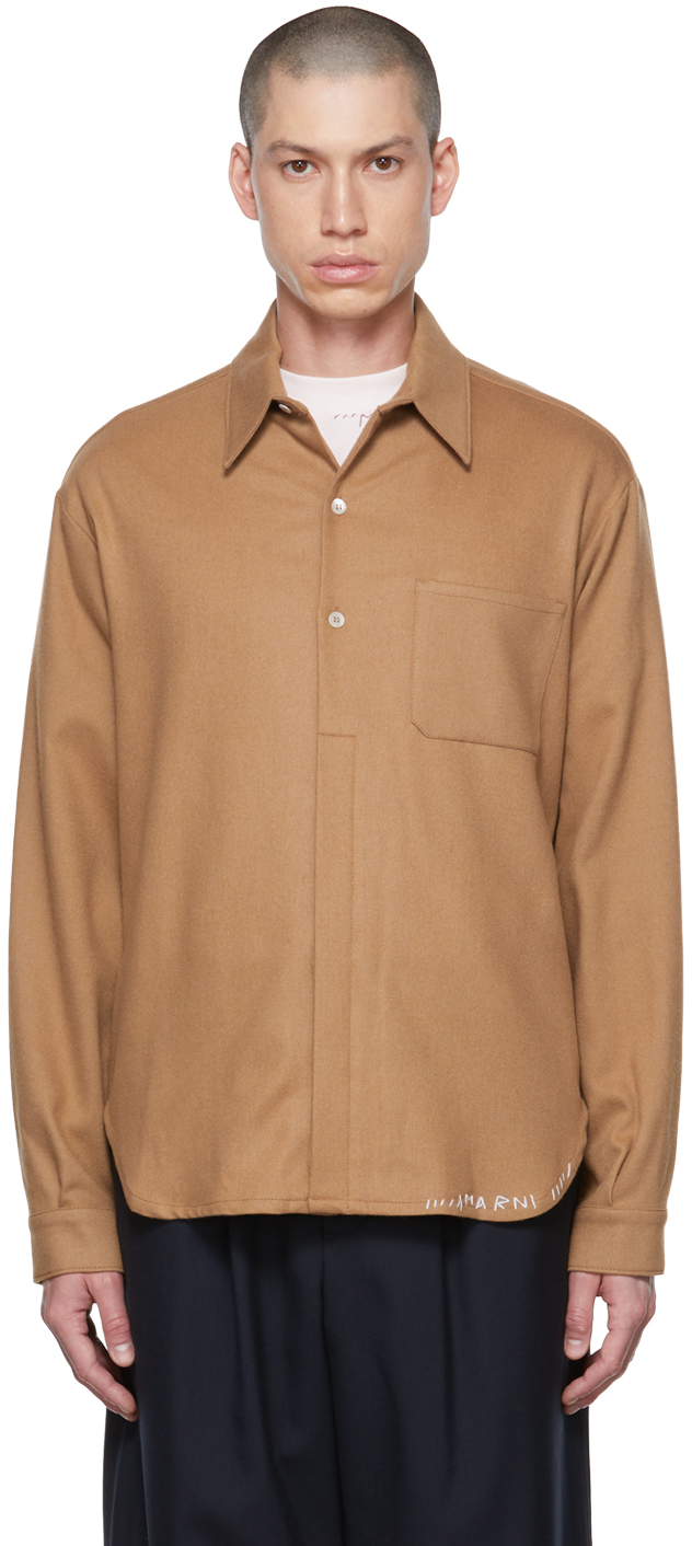 Marni Brown Felted Shirt In 00m20 Earth Of Siena