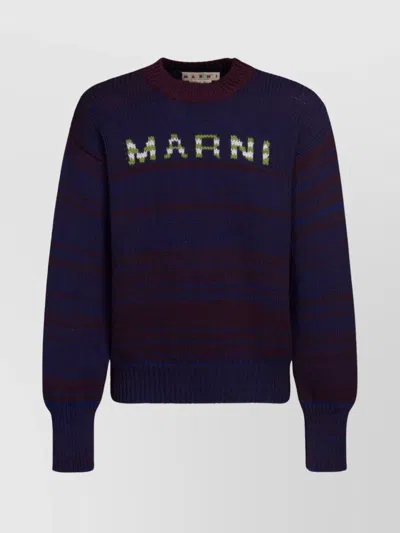 Marni Contrast Stripe Crewneck Sweater In Blue
