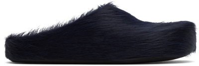 Marni Navy Calf-hair Fussbett Sabot Loafers In 00b84 Eclipse