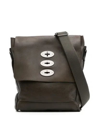 olive brown postman’s lock closure fastening adjustable shoulder strap main compartment