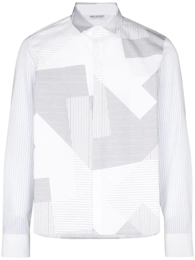 NEIL BARRETT Patchwork Stripe-pattern Shirt In White
