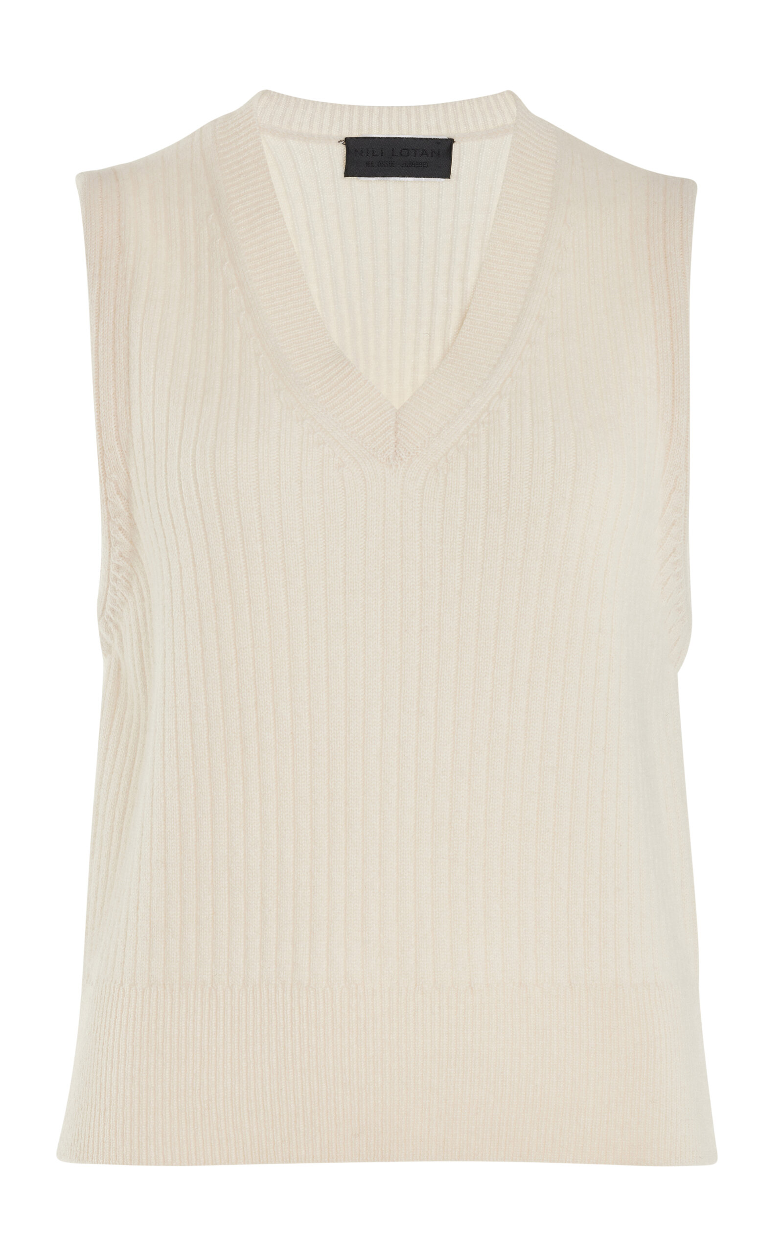 NILI LOTAN Iker Ribbed-knit Cashmere Sweater Vest In Ivory
