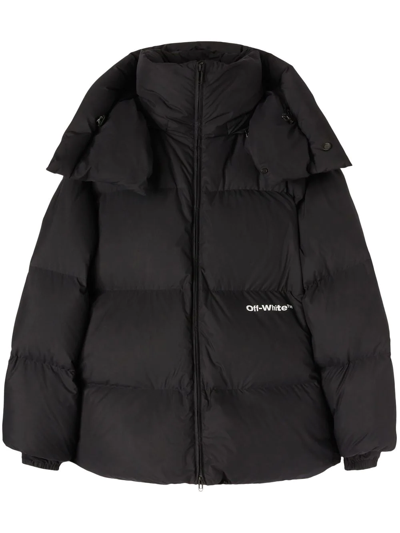 Off-white Logo Printed Long-sleeved Padded Jacket In Black