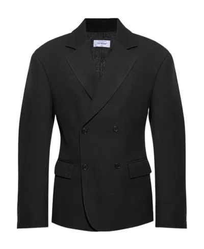 Off-white Double-breasted Virgin-wool Blazer In Black