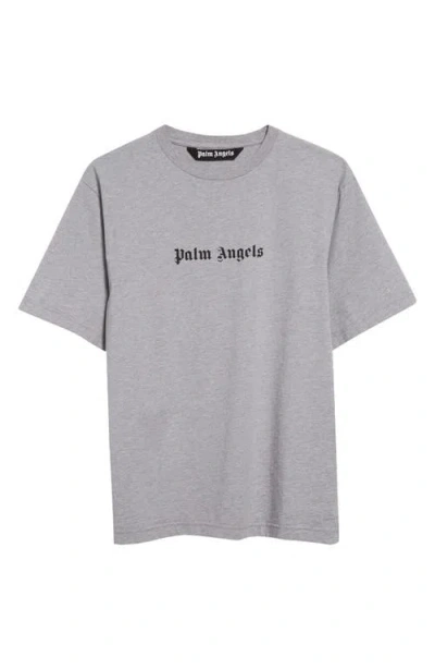 Palm Angels Classic Logo Slim Fit Cotton Graphic T-shirt In Grey Melange - Bla