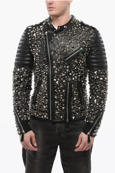 Philipp Plein Leather Holy Life Biker Jacket With Studs All-over