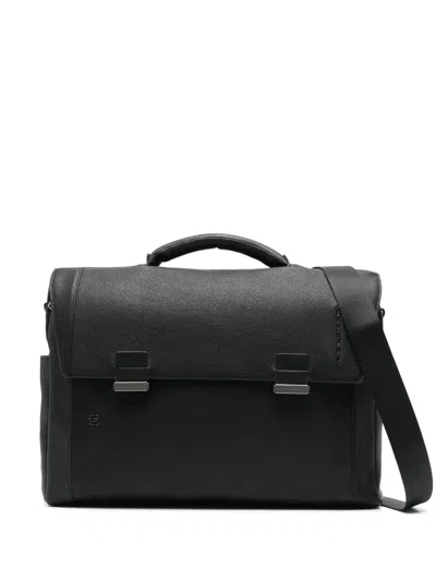 Piquadro 15,6" Leather Laptop Bag In 黑色