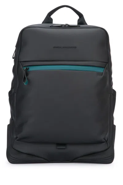 Piquadro Matte Finish Backpack With Front Zip Pocket In Black