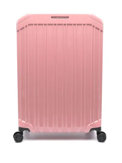 rose pink hard rectangle body silver-tone logo lettering four wheels all-around zip fastening adjustable top handle internal zip-fastening pockets main compartment internal logo patch