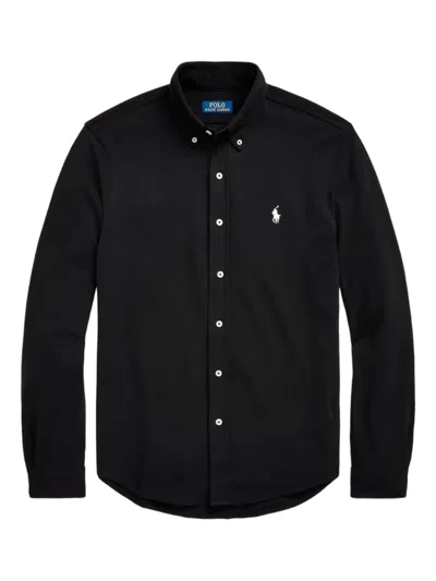 Polo Ralph Lauren Logo Embroidered Long-sleeved Shirt In Black