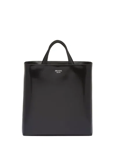 Prada Logo-stamp Leather Tote Bag In Schwarz