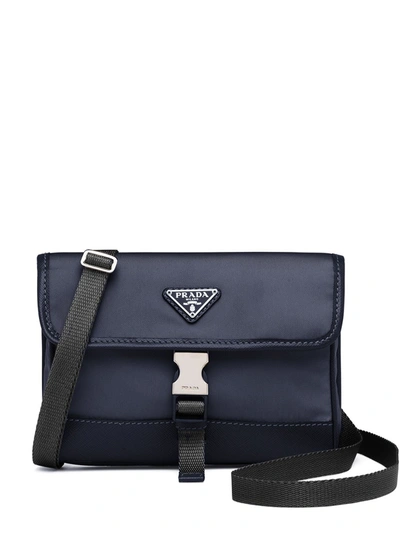 Navy blue Re-Nylon Re-Nylon smartphone case from PRADA featuring leather trim, enamel triangle logo, silver-tone hardware, detachable shoulder strap, front flap closure, buckle fastening, main compartment and internal card slot. POSITIVELY CONSCIOUS: At least 50% of the main material of this product meets our conscious criteria. For example, it's either organic, recycled, upcycled or independently recognised as being better for the environment (such as linen, ramie, TENCEL™ etc.)..