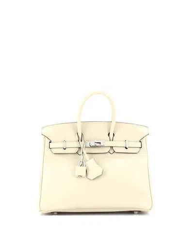 Pre-Owned HERMES Birkin 25 Handbag Light Swift with Palladium Hardware