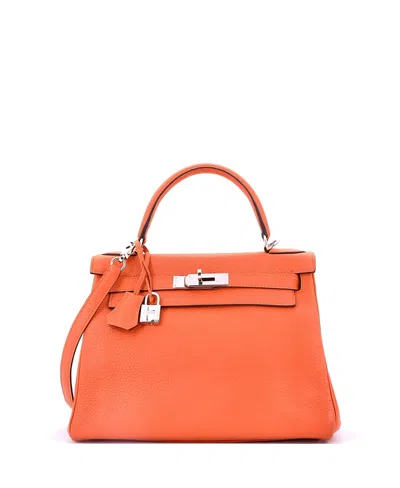 Pre-owned Hermes Kelly 28 Handbag Orange Clemence With Palladium Hardware