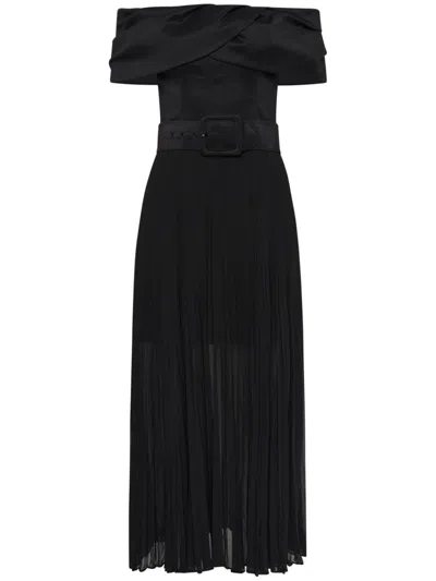 Rebecca Vallance Emilie Pleated Off-shoulder Midi Dress In Black