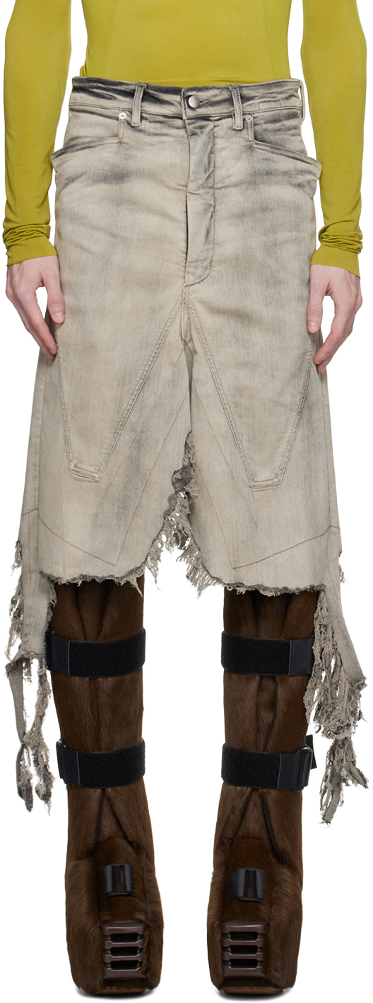 RICK OWENS Gray Slivered Denim Skirt In 58 Mineral Pearl