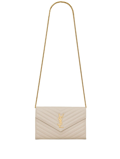 Saint Laurent Cassandre Envelope Leather Chain Wallet In Neutrals