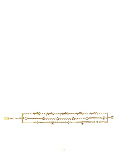 'Cassandre' multirow chain bracelet with crystals and logo.. Colour. : Gold. Composition. : 75% brass, 25% glass. Country Of Manufacture. : Costa Rica. Dimension. : True to size fit. MPN. : 770495Y15268066. .