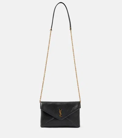 SAINT LAURENT Cassandre Small Leather Wallet On Chain In Black