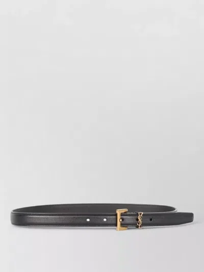 Saint Laurent Cassandre Thin Calfskin Belt Logo In Black