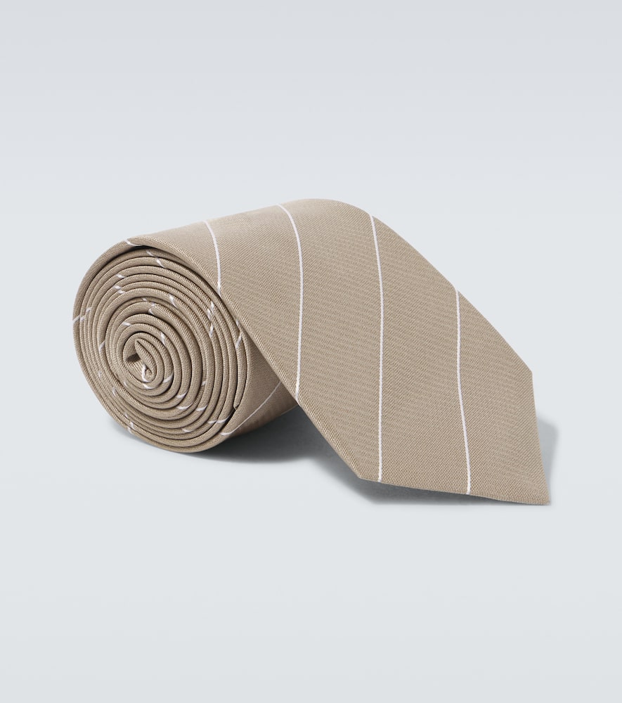 SAINT LAURENT Stripped Silk Tie In Neutral