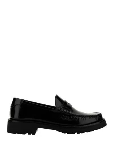 Loafers made of leather Round toe Metal YSL monogram on the front Rubber sole Embossed logo detail on back tongue Low and wide heel Heel height: 3. 5 cm Black Made in Italy Composition: 100% leather Composition: 100% Calf Leather Bos Taurus, 100% Rubber