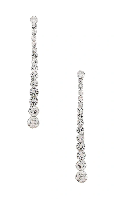 SHASHI Romane Earrings in Metallic Silver. Silver-plated. Crystal drops. Imported. Post-back closure. Measures approx 3 dangling. SHAS-WL400. SH-E549. In 2009, designers Yuvi Alpert and Danna Kobo debuted Shashi, an everyday jewelry line that holds to the unique quality of their luxury brand Ruby Kobo. As the free-spirited, bohemian-inspired sister collection to their main line, Shashi is fraught with dainty jewels and beaded pieces, architectural rings, and bright friendship bracelets. Pile them on or wear them alone for a style that is all your own.