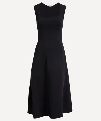 The Compact Knit dress from Stella McCartney makes for being the perfect little black dress with its elegant, understated design. Cut from a viscose-blend to a figure-skimming silhouette that effortlessly moulds around the body, it flares below the knee to a flounced hem.