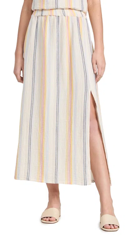 Sundry Long Skirt W/ Slit Cream/multi Stripes