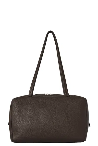 The Row Womens Dark Brown Ans Astra Bowling Leather Shoulder Bag