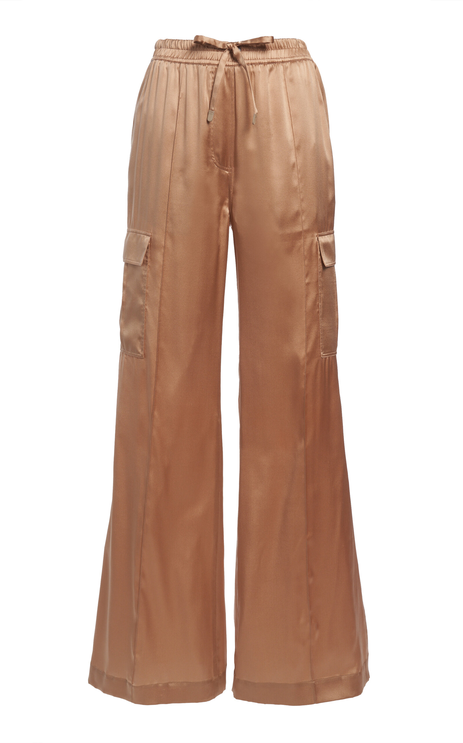 Cargo-pocket Silk-satin Pajama Pants In Nude